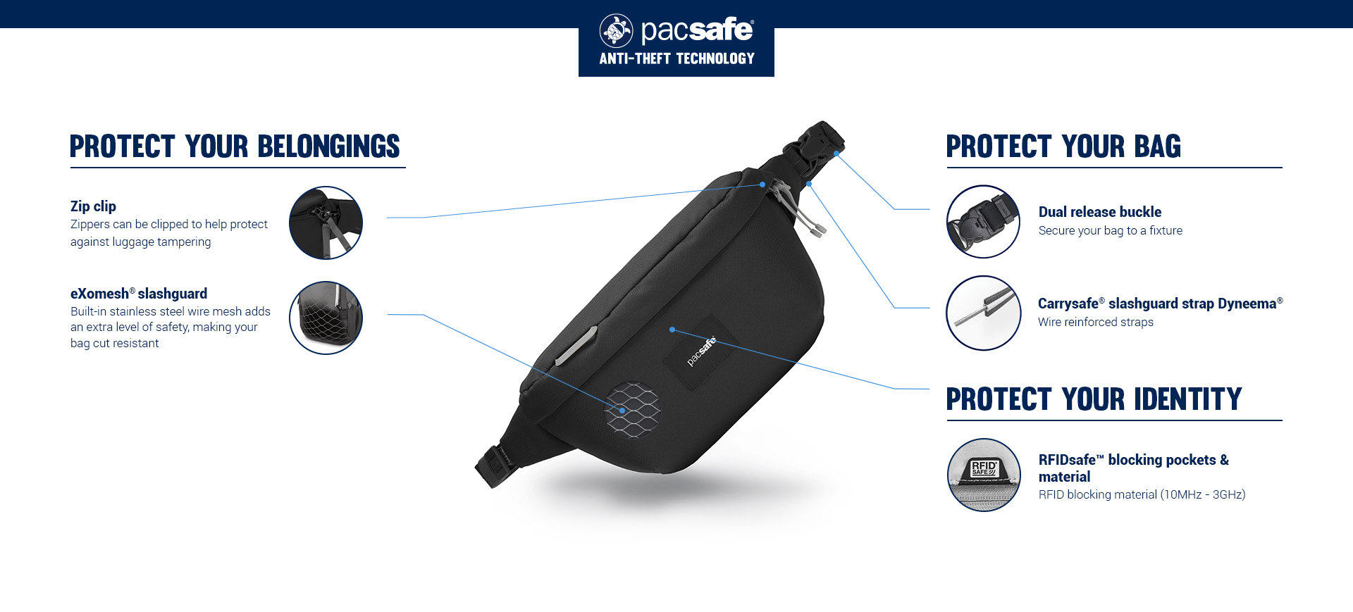 • Carrysafe® slashguard strap with Dyneema®
