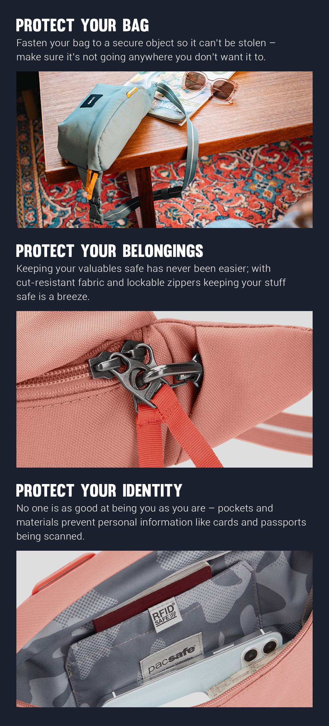 I love this bag, not only for its amazing security features, but it is so roomy. Another brilliant design from Pacsafe.